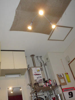 天井の、照明の上に張ってあるのは、園芸用の布みたいなものです。
