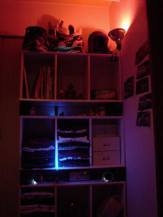 ネオンとLEDは自動車用のを使っています。家庭用の電源では使えないのでコンバーターを使って交流100ボルトを直流の12ボルトにしています。