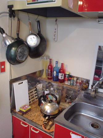 右側には小さな冷蔵庫。これで毎日の生活をしのいでいます。