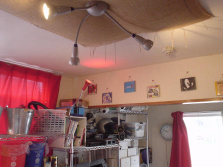 照明は以前のまま。おくの天井を照らしている赤い照明は、赤LEDタイプのものです。