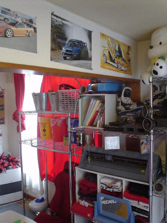 さっきは仕切りの壁にCDでしたが、奥から見ると車のポスターを貼っています。