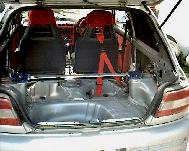 FRPボンネット、エアコンレス、内装レス、アンダーコート剥がし、オーディオレス等かなりの軽量化を施し、点火時期調整から、カムシャフト、などエンジン内部にも手を入れました。